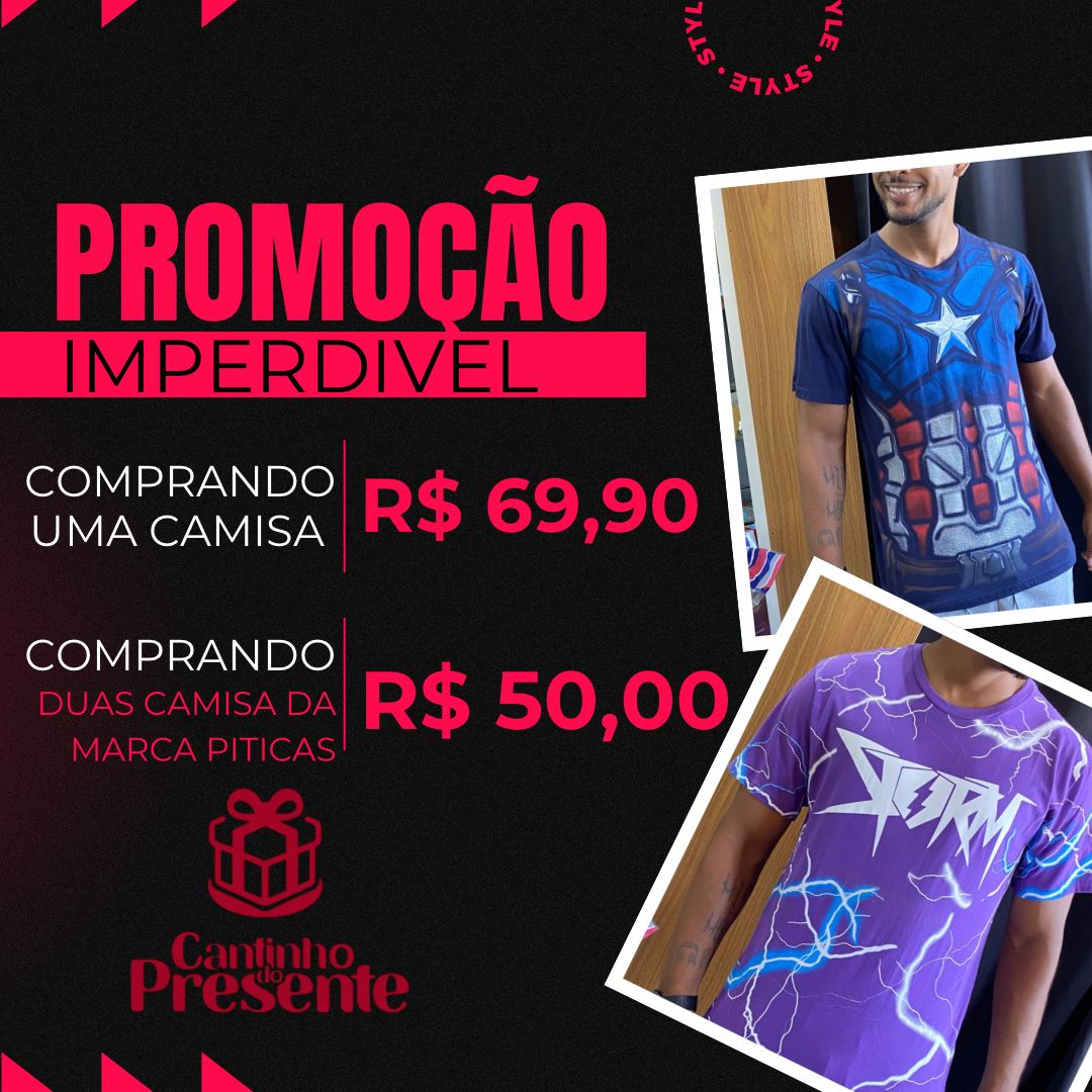 Comprando duas camisas Piticas, cada uma sai por R$ 50,00.