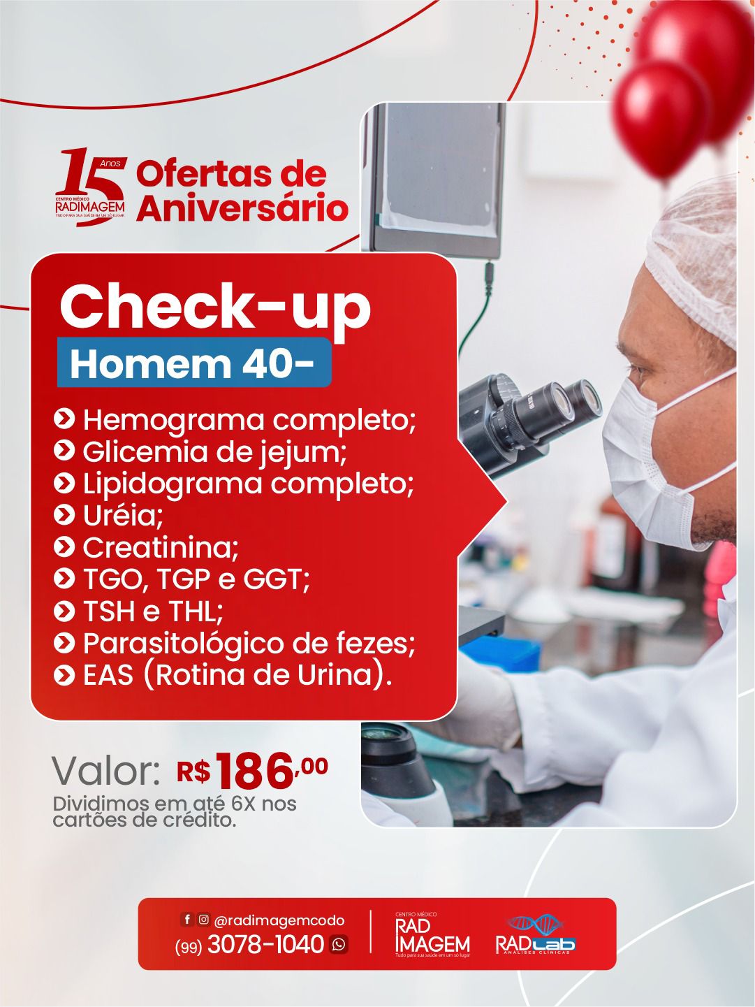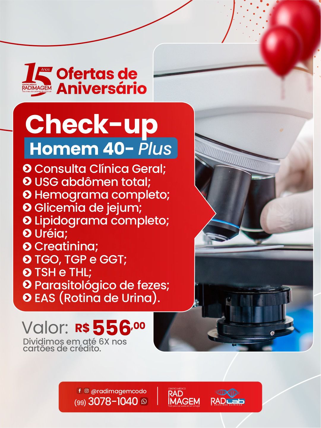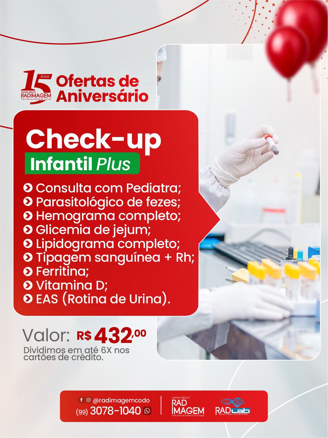 Promoções de aniversário? Sim! Rad Imagem Codó celebra 15 anos com descontos exclusivos! Publicado em: 10 de novembro de 2025Autor: Alberto BarrosDeixe um Comentário! O Centro Médico Rad Imagem Codó celebra 15 anos de atuação neste mês de novembro. Para comemorar a data, a clínica preparou combos promocionais especiais para toda a família, válidos durante todo o mês. CONFIRA!