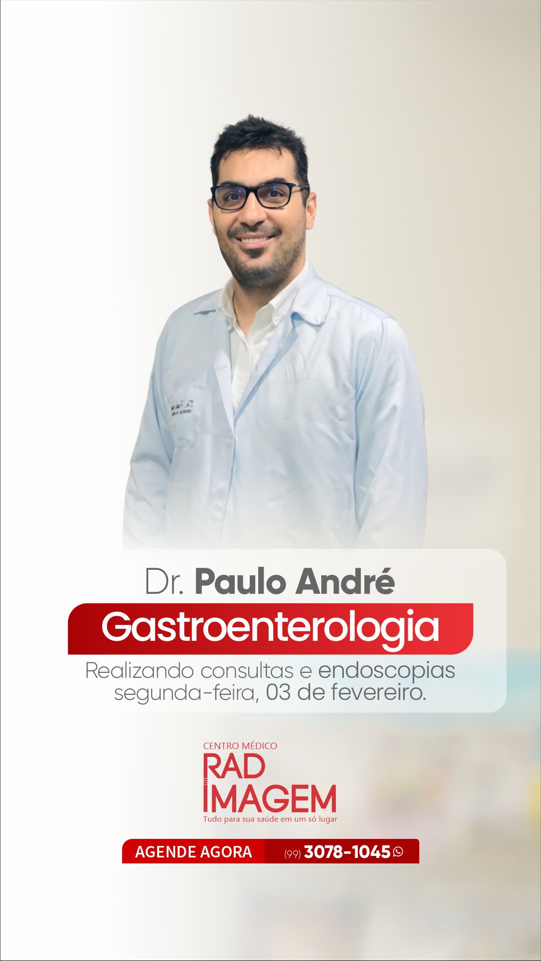 Rad Imagem: Dr. Paulo André, gastroenterologista, realizará consultas e endoscopias, segunda-feira, 03 de fevereiro - Blog do Alberto Barros