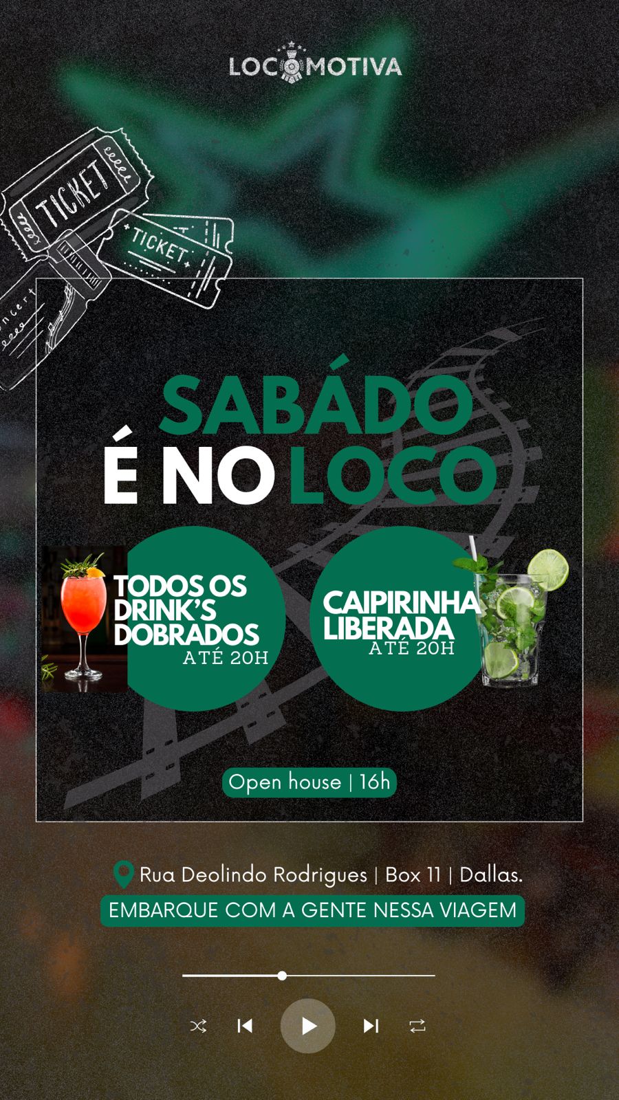 Sábado é no Loco. Todos os drink’s dobrados até às 20h e caipirinha liberada até às 20h
