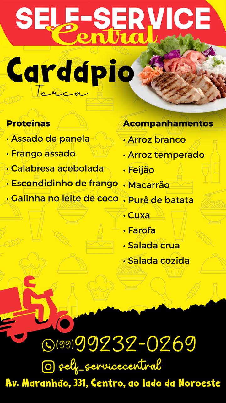 Procurando uma refeição deliciosa e caseira em Codó-MA? No Self Service Central, você encontra um cardápio variado e saboroso de segunda a sábado. Venha conferir nosso menu do dia e desfrutar de uma refeição fresquinha e bem preparada. Estamos na Praça da Bíblia, ao lado da Noroeste. Esperamos por você!