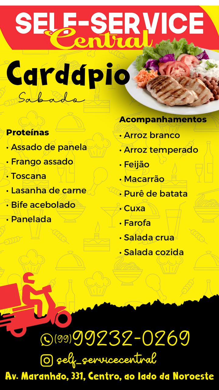 Procurando uma refeição deliciosa e caseira em Codó-MA? No Self Service Central, você encontra um cardápio variado e saboroso de segunda a sábado. Venha conferir nosso menu do dia e desfrutar de uma refeição fresquinha e bem preparada. Estamos na Praça da Bíblia, ao lado da Noroeste. Esperamos por você!