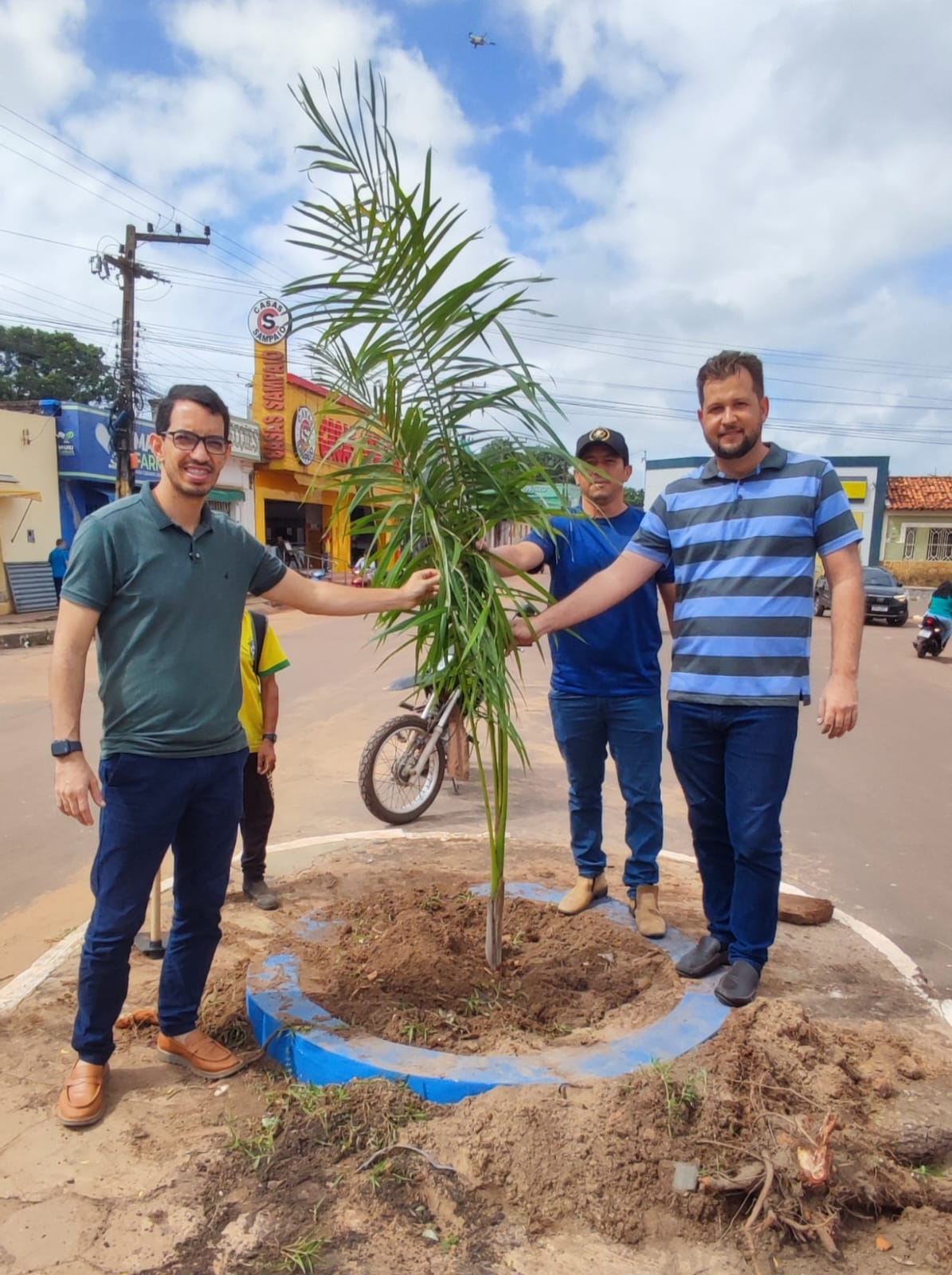 Segundo o secretário de Meio Ambiente Carlinhos do Bel, foram plantadas nove mudas doadas pelo professor Wildon Menezes e Nilde. “Quero aqui deixar nossos sinceros agradecimentos pela doação das mudas de palmeira imperial, mas também quero afirmar a nossa população que estamos planejando varias ações de meio ambiente para deixar nossa cidade cada vez melhor e mais bonita”, disse o secretário.