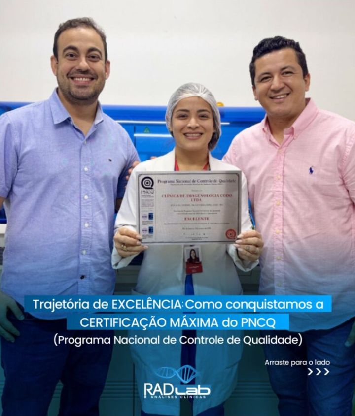 O Laboratório Rad Lab alcançou um marco significativo em sua história ao conquistar a certificação máxima do Programa Nacional de Controle de Qualidade (PNCQ). Esse reconhecimento reflete a dedicação contínua da equipe em oferecer serviços laboratoriais de alta qualidade, com precisão e confiabilidade nos resultados.