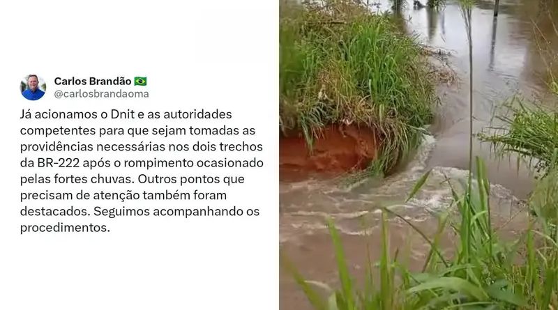 O governador Carlos Brandão informou em redes sociais que acionou o Departamento Nacional de Trânsito (Dnit) para tomar as devidas providências.