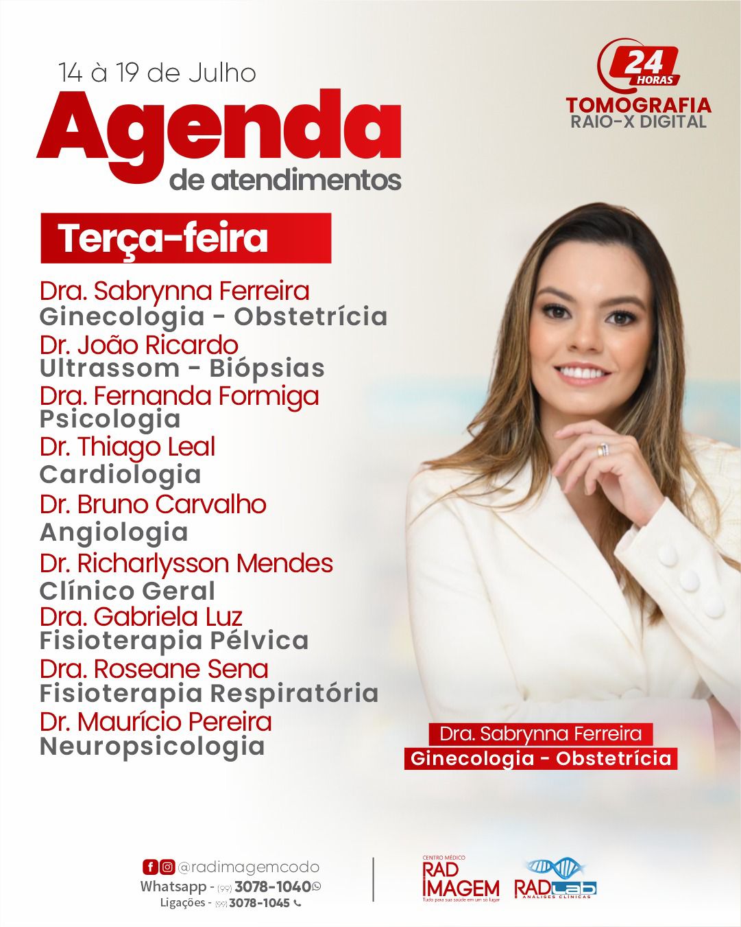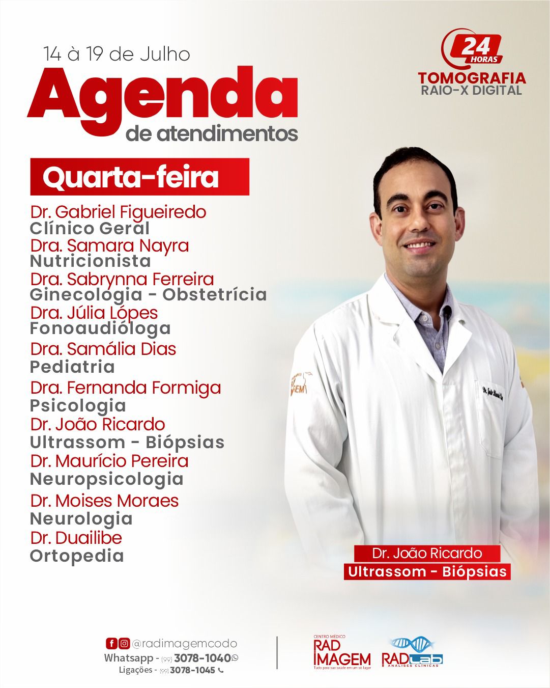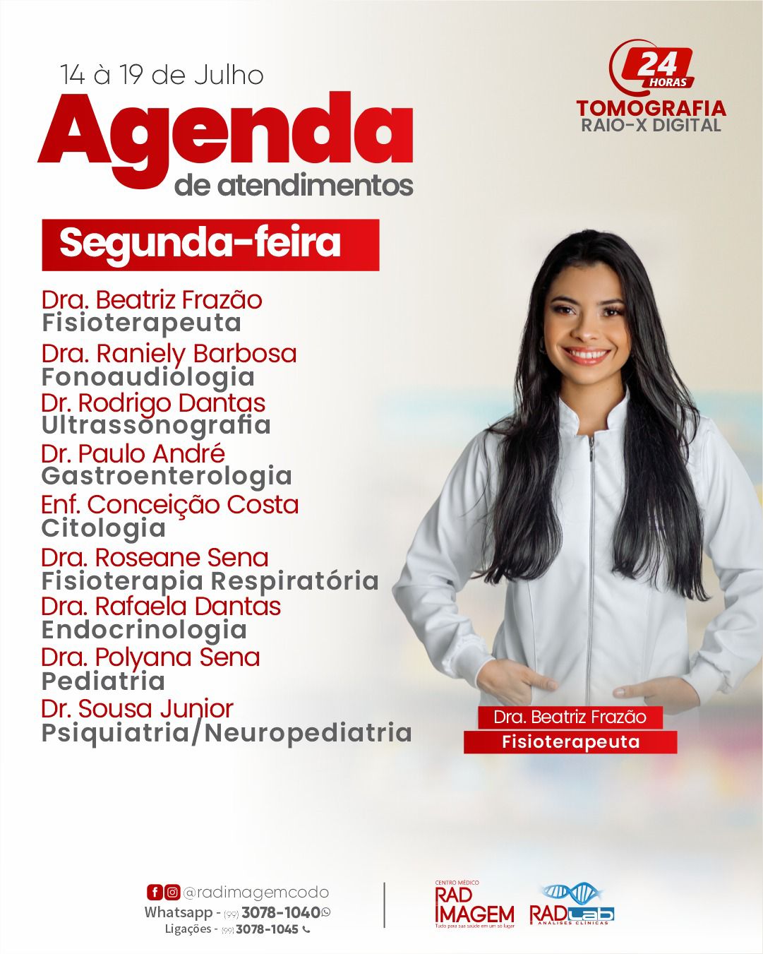Veja a lista de médicos especialistas desta semana da Rad Imagem Codó Publicado em: 14 de julho de 2025Autor: Alberto BarrosDeixe um Comentário! Veja a lista de especialistas da Rad Imagem e marque sua consulta para esta semana (de 14 à 19 de julho).