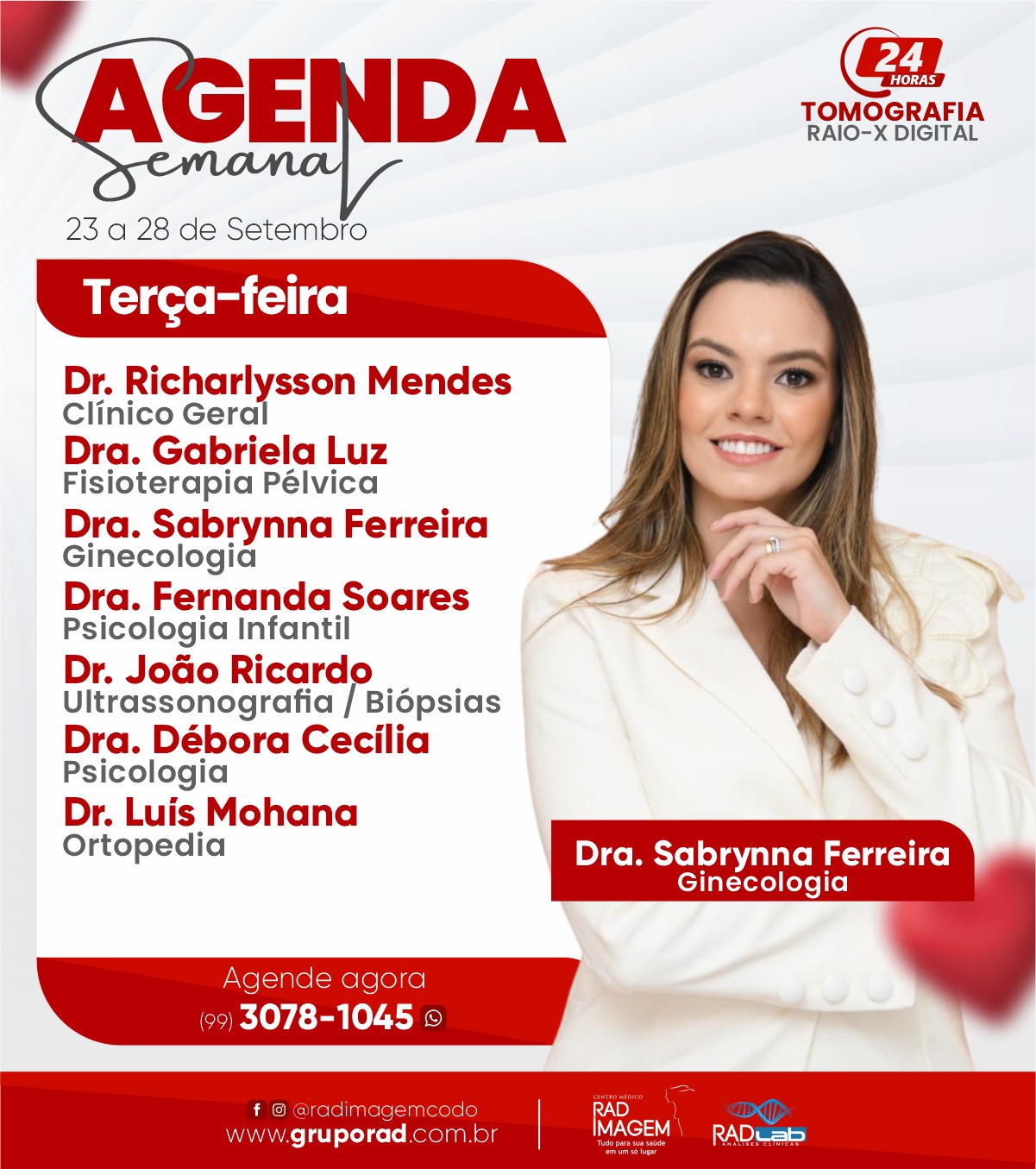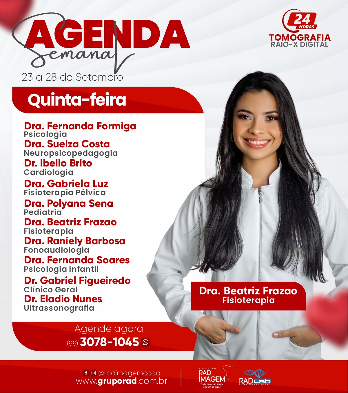 Veja a lista de médicos especialistas desta semana da Rad Imagem Codó Publicado em: 23 de setembro de 2024Autor: Alberto BarrosDeixe um Comentário! Veja a lista de médicos especialistas da Rad Imagem e marque sua consulta para esta semana (de 23 à 28 de setembro).