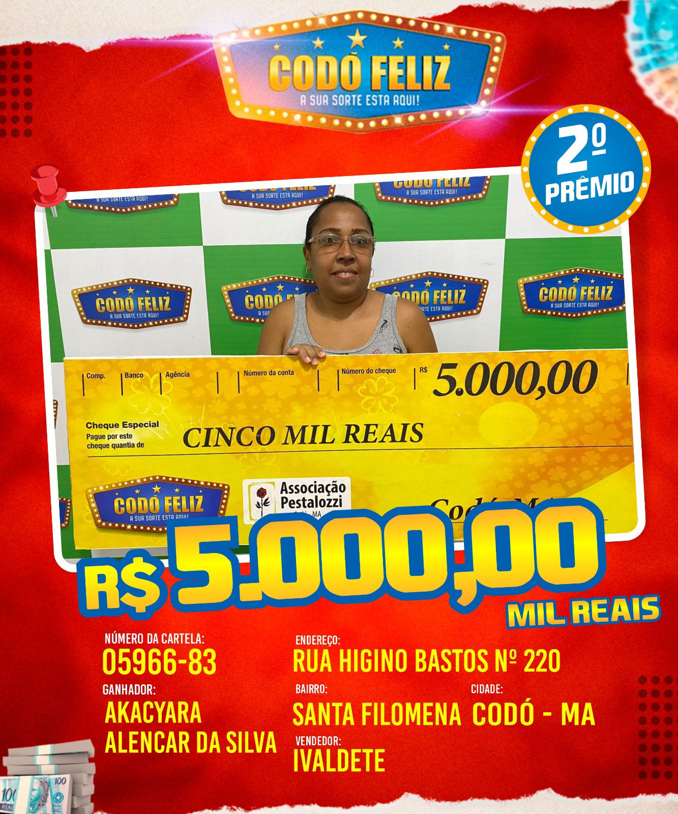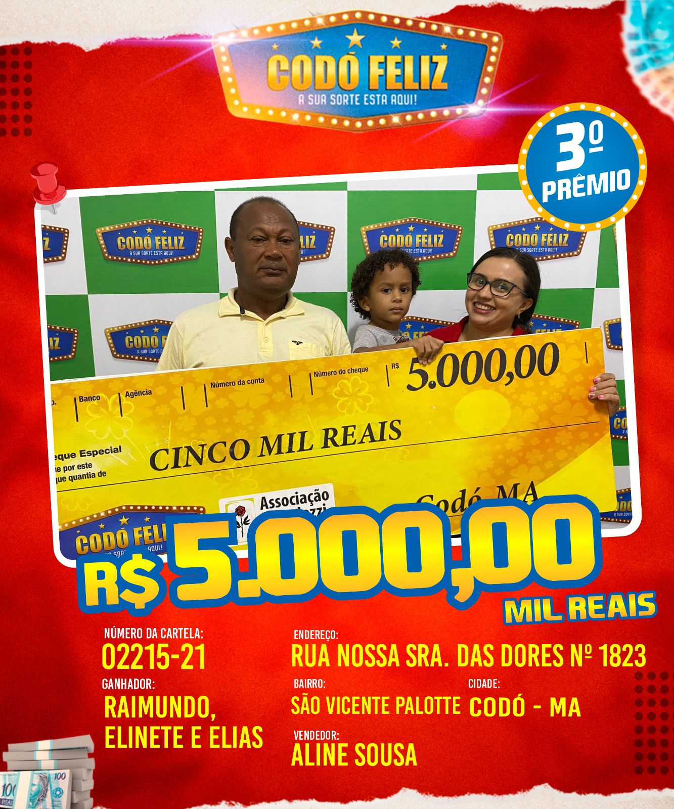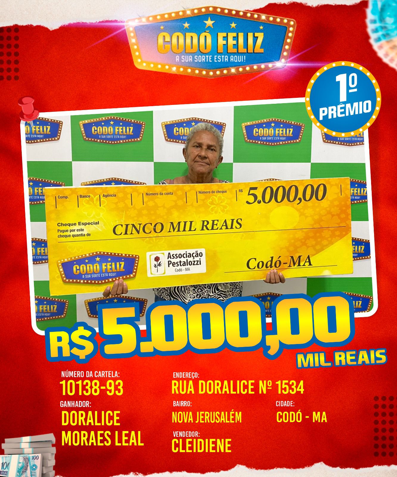 Veja quem foram os Ganhadores da 283° Extração do Codó Feliz desse domingo 12/03/2023!!! Publicado em: 14 de março de 2023Autor: Alberto BarrosDeixe um Comentário!