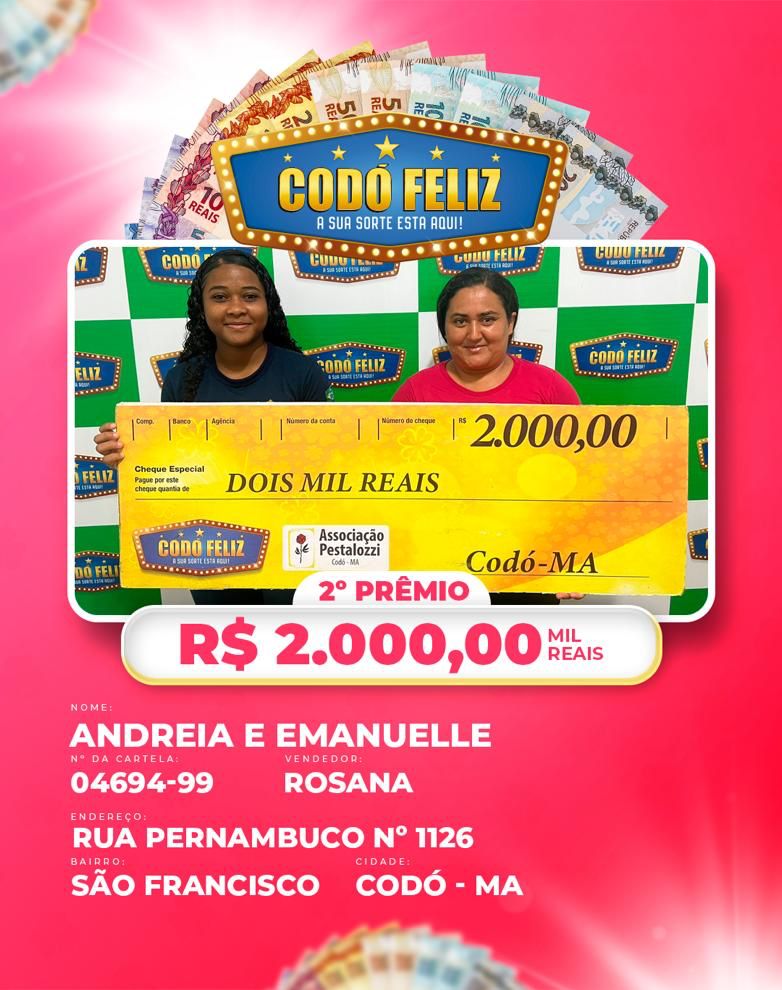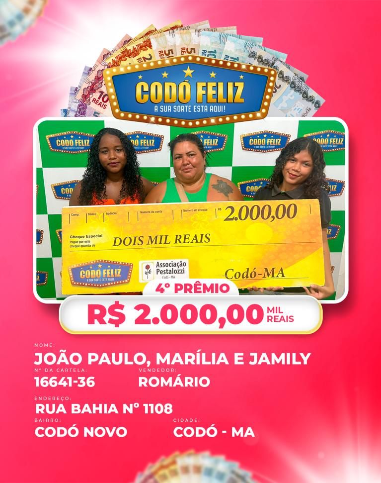 Veja quem foram os Ganhadores da 318ª Extração do Codó Feliz Publicado em: 20 de novembro de 2023Autor: Alberto BarrosDeixe um Comentário!