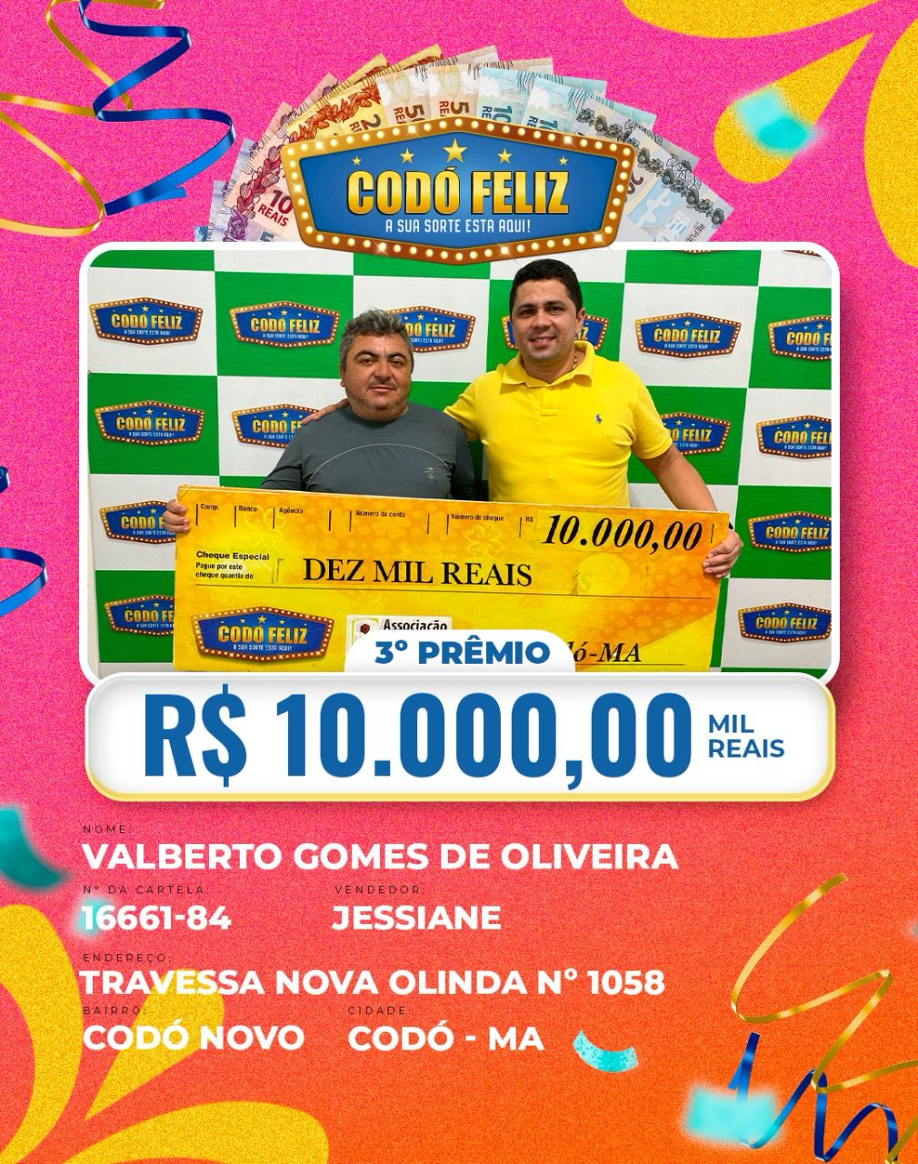 Veja quem foram os Ganhadores da 330ª Extração do Codó Feliz Publicado em: 19 de fevereiro de 2024Autor: Alberto BarrosDeixe um Comentário!