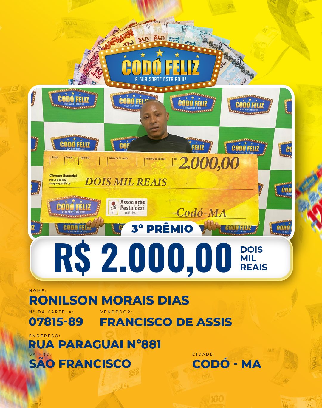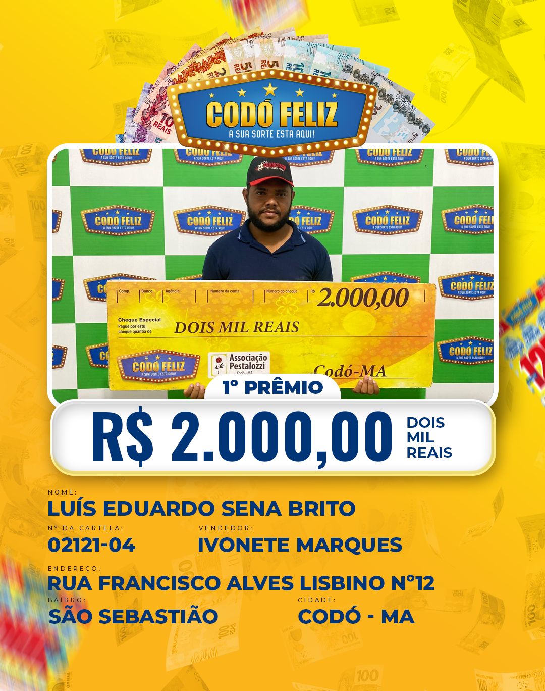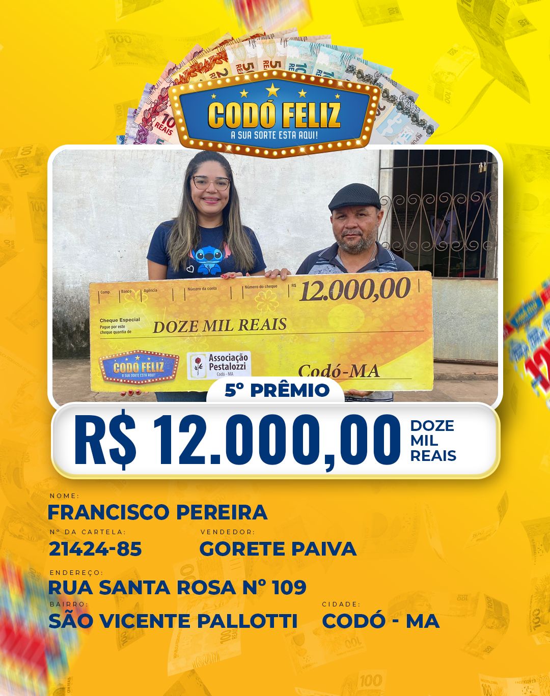 Veja quem foram os Ganhadores da 359ª Extração do Codó Feliz Publicado em: 17 de setembro de 2024Autor: Alberto BarrosDeixe um Comentário!