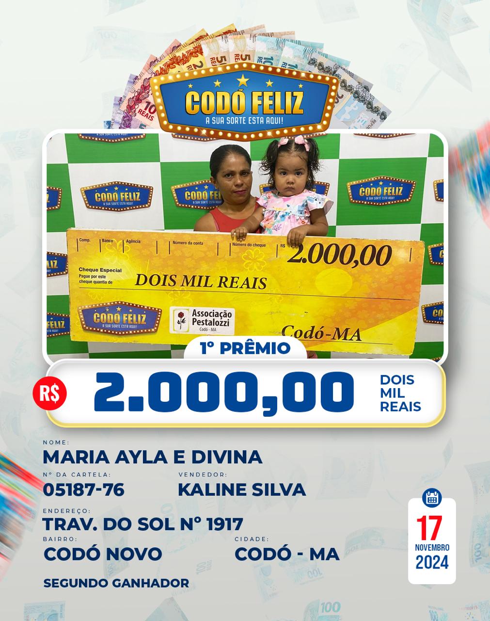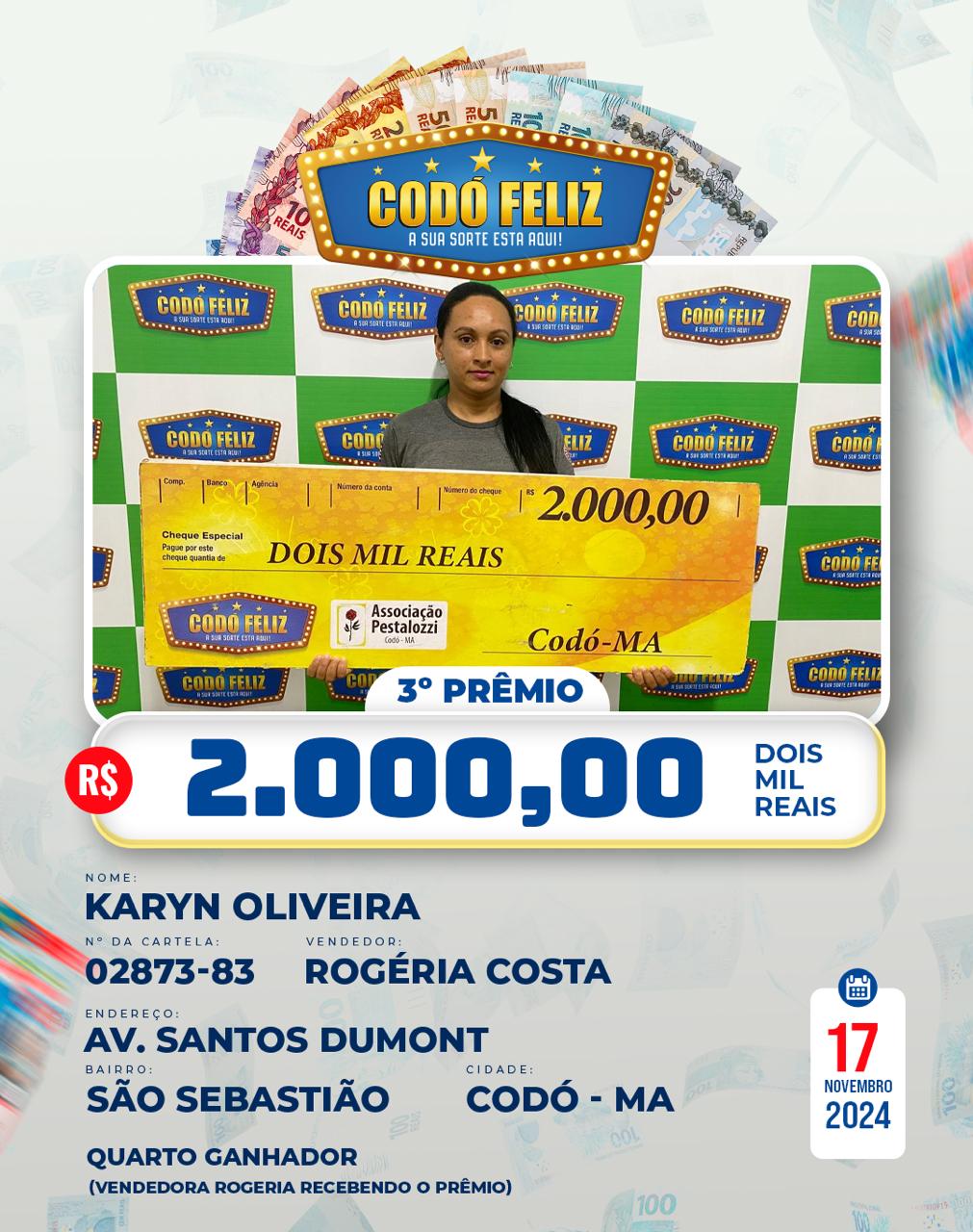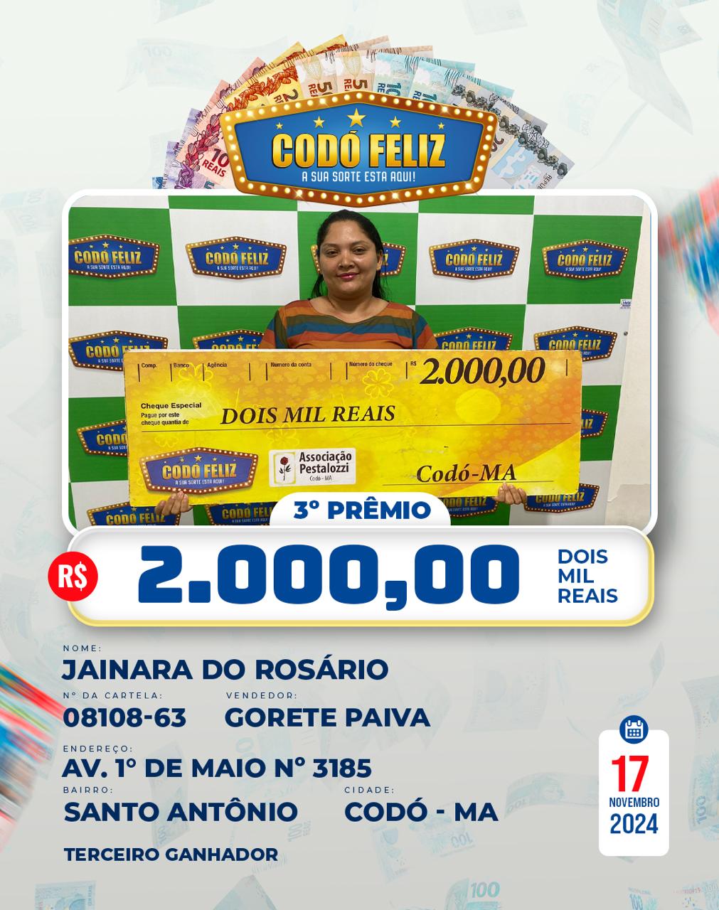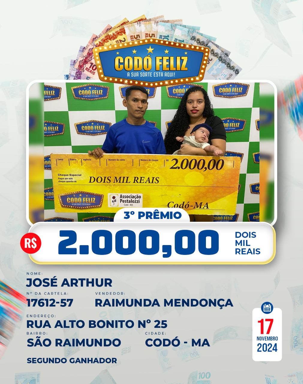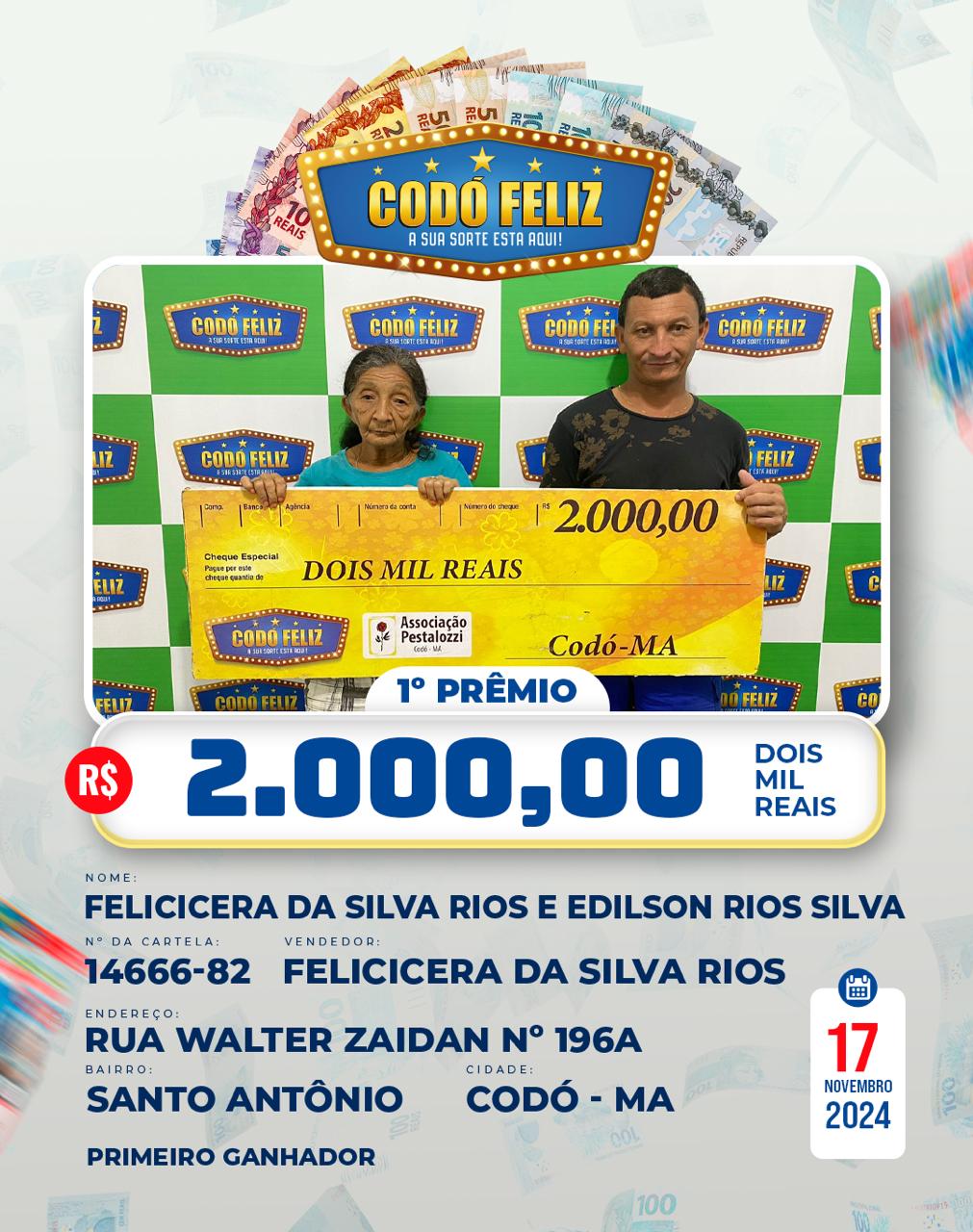 Veja quem foram os Ganhadores da 367° Extração do Codó Feliz Publicado em: 20 de novembro de 2024Autor: Alberto BarrosDeixe um Comentário!