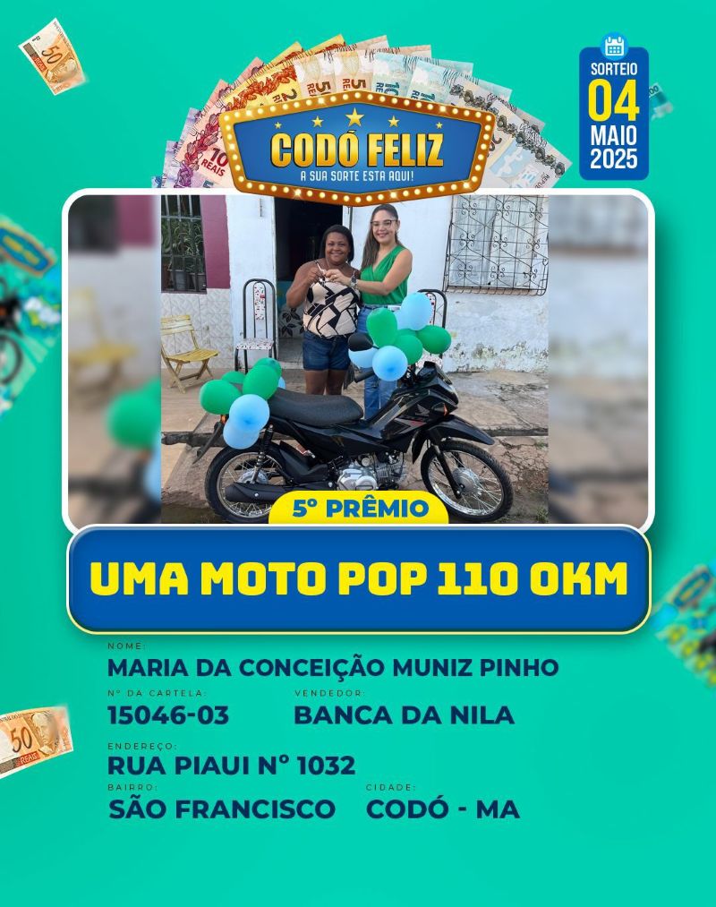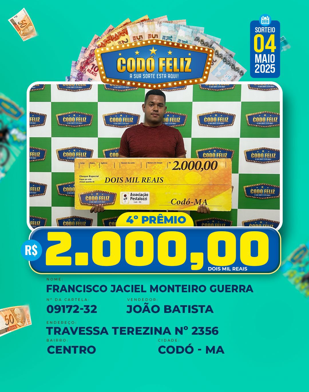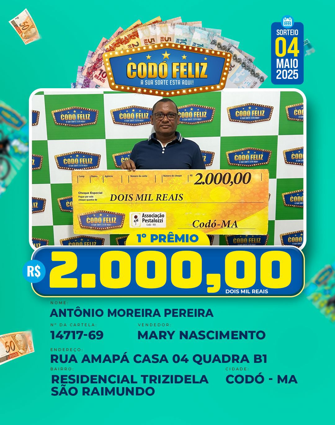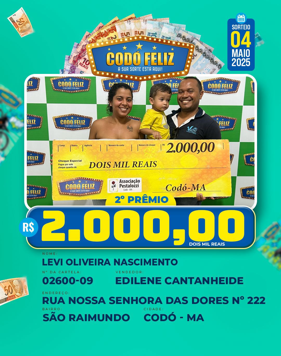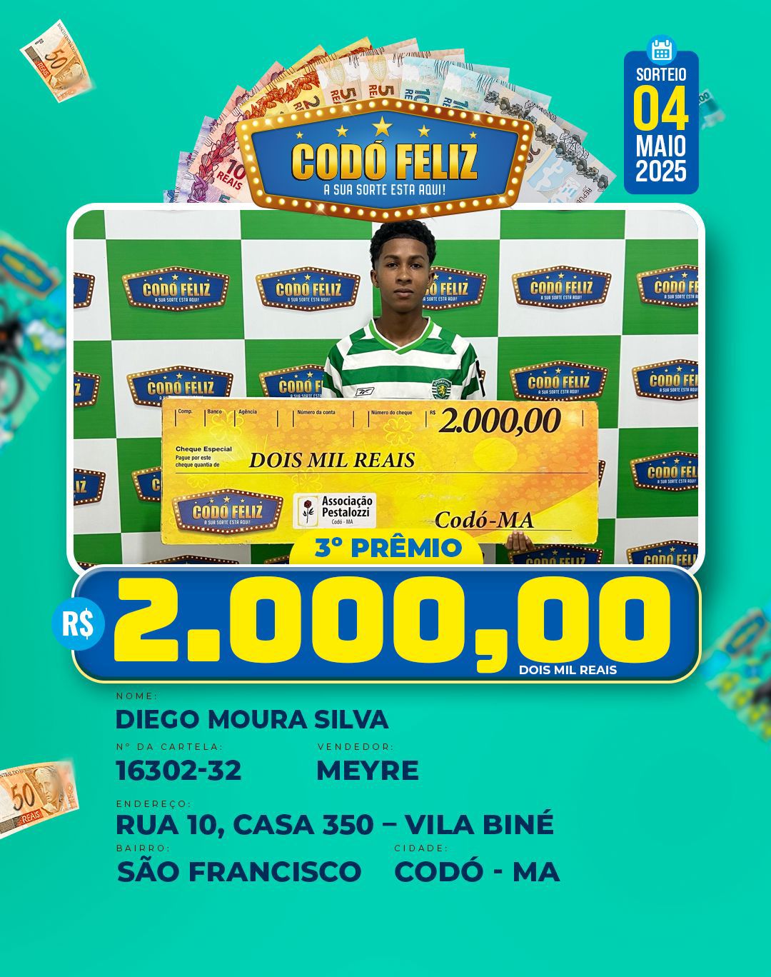 Veja quem foram os Ganhadores da 389ª Extração do Codó Feliz desse domingo 04/05/2025 Publicado em: 6 de maio de 2025Autor: Alberto BarrosDeixe um Comentário! Veja quem foram os Ganhadores da 389ª Extração do Codó Feliz desse domingo 04/05/2025 Parabéns à Todos Codó Feliz A Sua Sorte Está Aqui