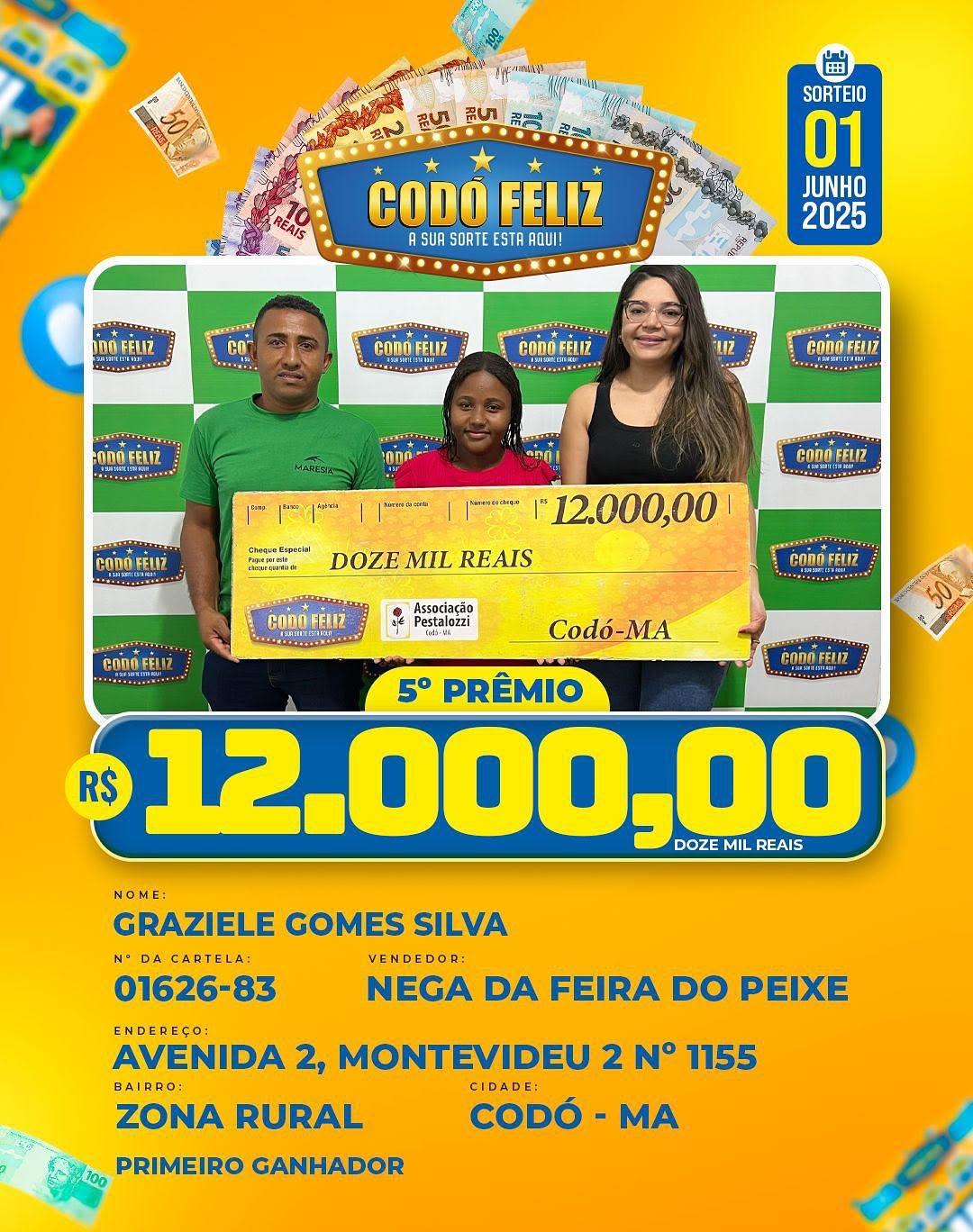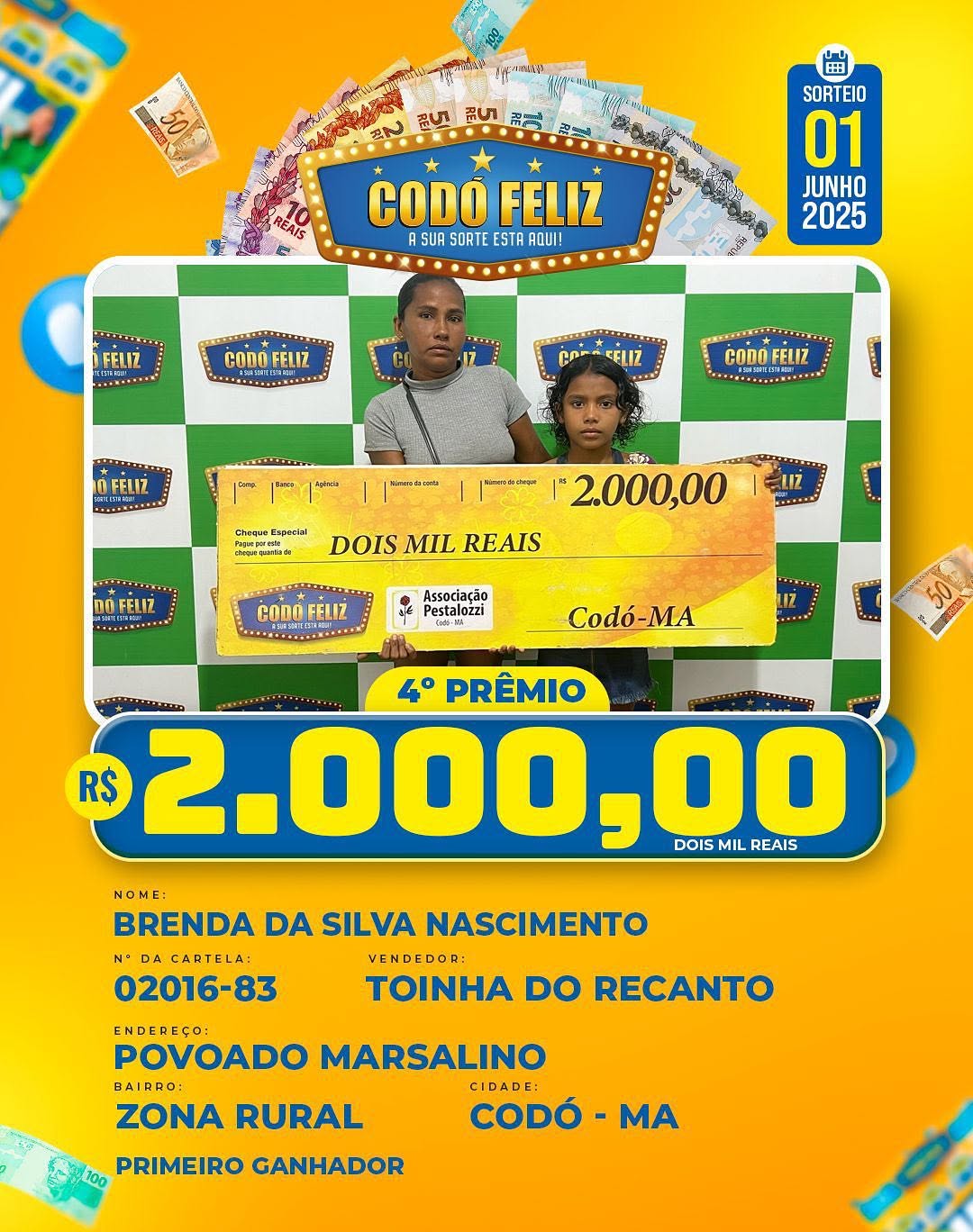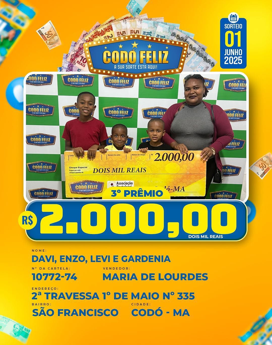 Veja quem foram os Ganhadores da 393° Extração do Codó Feliz Publicado em: 4 de junho de 2025Autor: Alberto BarrosDeixe um Comentário!