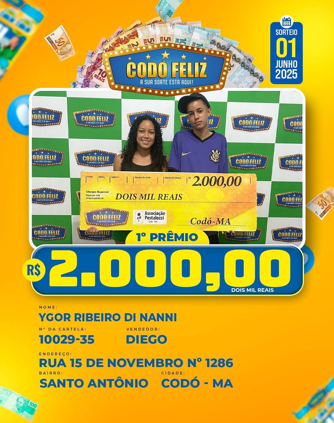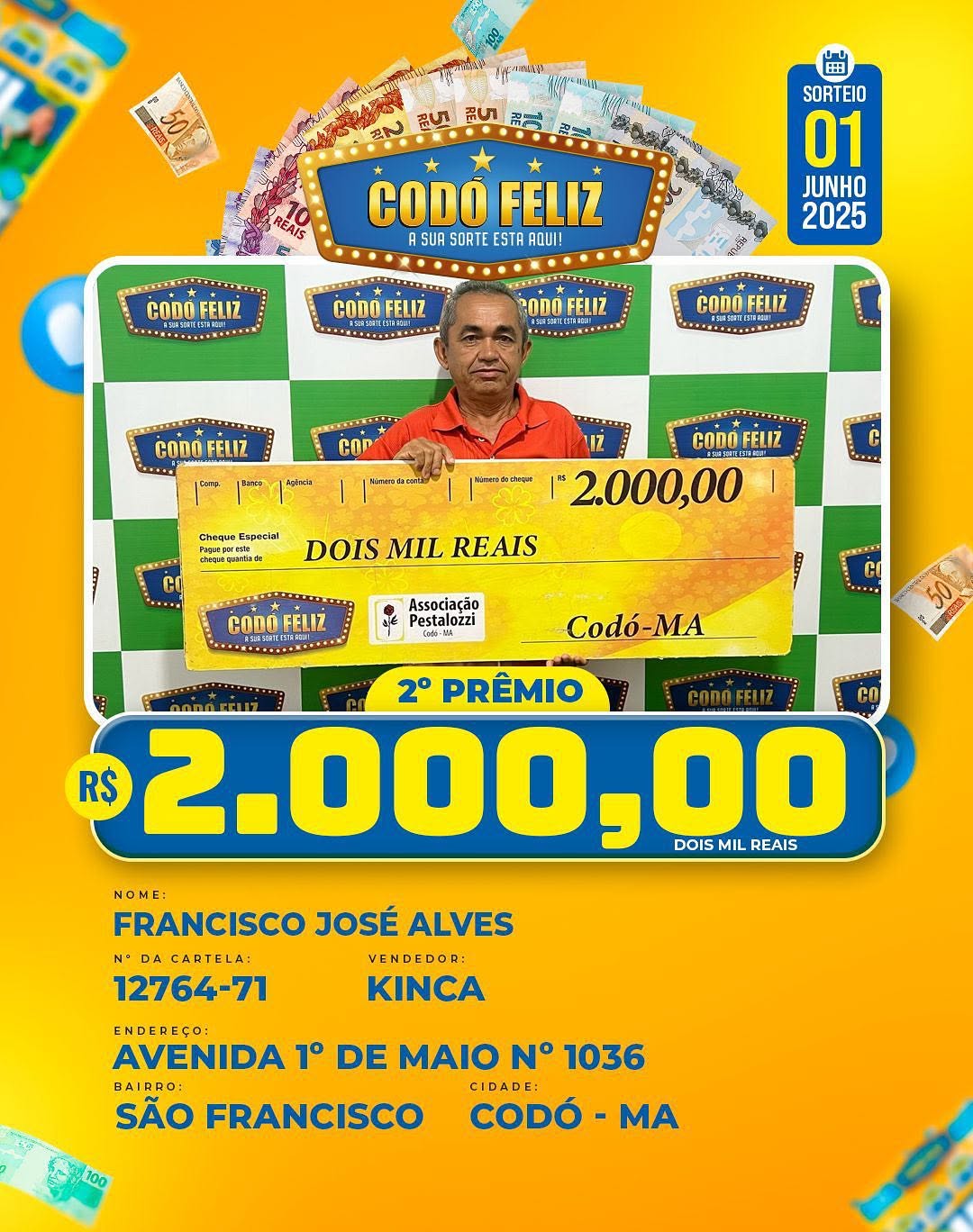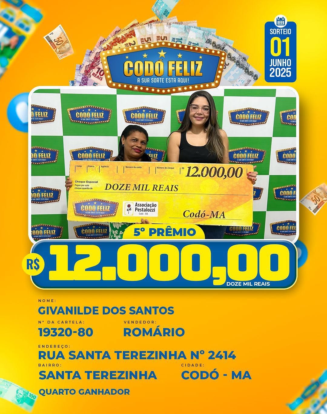 Veja quem foram os Ganhadores da 393° Extração do Codó Feliz Publicado em: 4 de junho de 2025Autor: Alberto BarrosDeixe um Comentário!