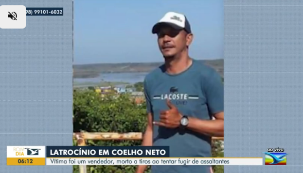Um vendedor ambulante identificado como Laurimar Araújo, de 38 anos, foi morto a tiros ao tentar fugir de dois assaltantes armados no povoado Itapirema em Coelho Neto, cidade a 385 km de São Luís. O caso aconteceu na segunda-feira (5).