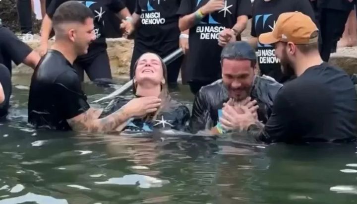 “Um dos melhores dias das nossas vidas! Nascemos de novo! Te entregamos tudo, Deus! Nossa casa, nosso casamento, nossos filhos, nossa família, use a gente da forma que o senhor quiser”, escreveram.