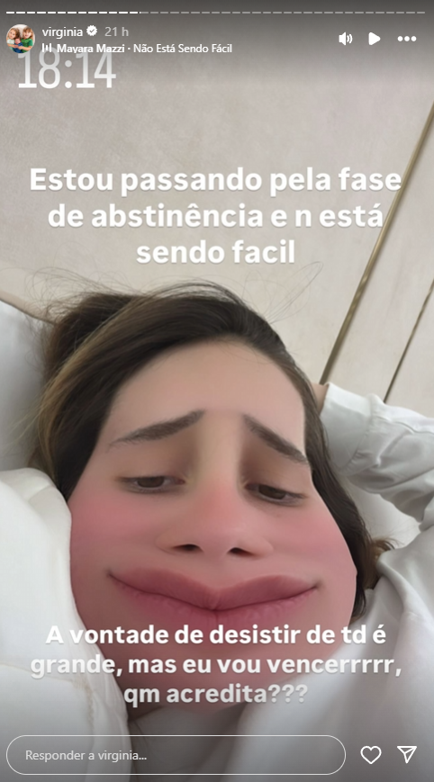 Durante sua atualização nas redes sociais, Virginia mencionou que está passando por um período difícil de abstinência enquanto se adapta a um novo regime de tratamento. A quebra de inércia de medicamentos utilizados para o alívio imediato da dor é um processo desafiador e pode incluir sintomas de abstinência como irritabilidade, ansiedade e reações físicas adversas.